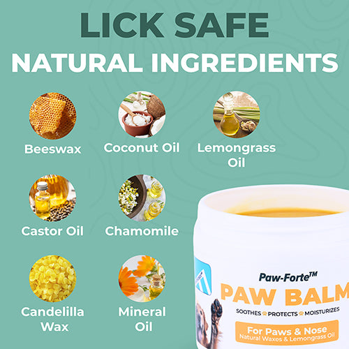 Paw-Forte helps protect paws from the damage caused by hot sand, pavement, ice and salt. When the balm is applied to the pads and between toes it forms a protective barrier. Non-toxic, hypoallergenic formula helps sooth cracked inflamed skin and protect is from infection. Moreover, it helps treat rash, minor burns, severely chapped skin, or other minor skin irritations.